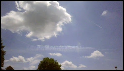 This week, as Zach and I arrived in the parking lot at the Golden Phoenix Chinese buffet in lovely Niskayuna, New York, I spied in the sky above a curious shimmering rainbow-like cloud or contrail. I took a number of stills. While the photos don't really due justice to the cloud phenomenon observed, I post them here for your viewing pleasure. The quiet Tim W2QAC referred to this cloud type as a "Mare's Tail".